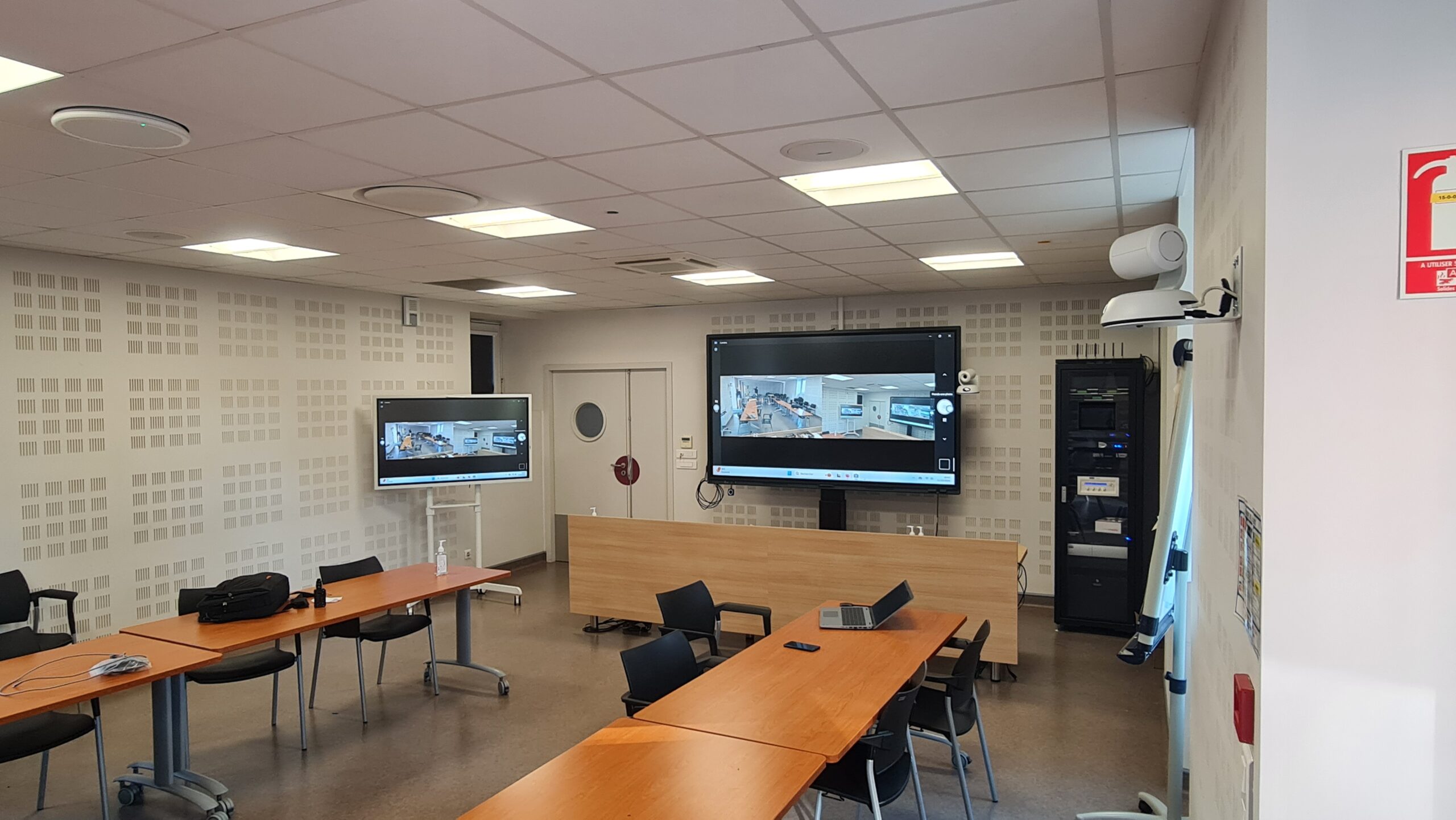 Deux caméras de visioconférence assurent une captation optimale des échanges.